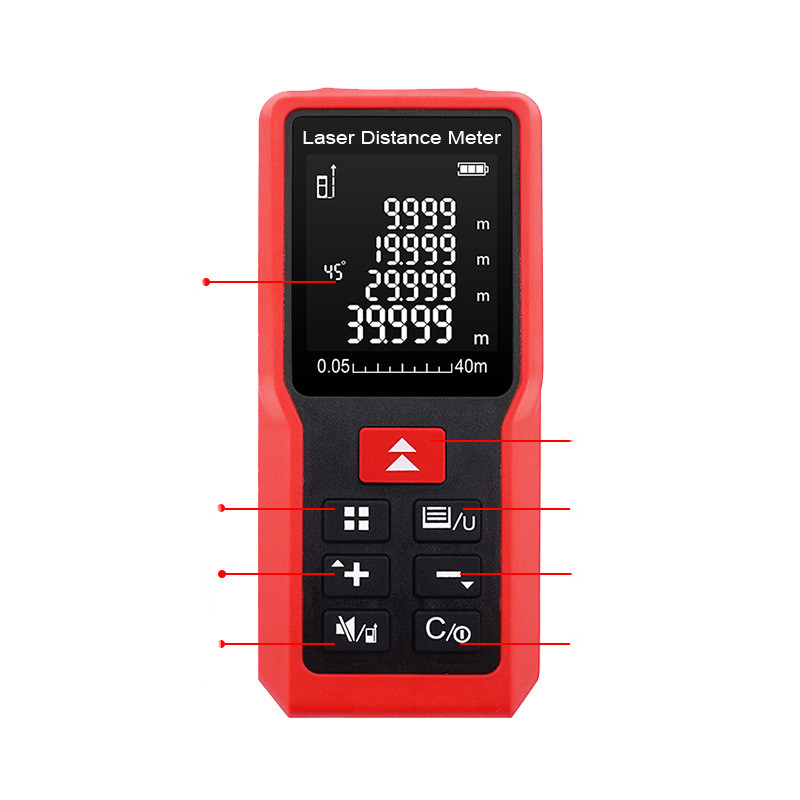 Measuring range:ME40:0.05m~40m/ME60:0.05m~60m/ME80: 0.05m~80m/ME100: 0.05m~100m